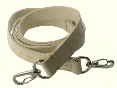 A replacement strap for your handbag. Available in Cream with contrasting tangerine stitching.This strap is a fixed length of 42.5" (108 cms)and 3/4" (19mm) wide. The strap is easily fitted with chrome "dog clip" fittings and is made of top quality leather.